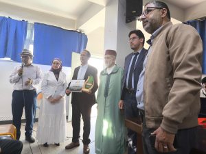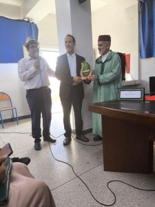 وبعد مناقشة العروض الثلاث، تم تكريم الأستاذ محمد مولود الأصم أحد قيدومي أساتذة التربية الإسلامية بالجهة، وذلك عرفانا لخدماته الجليلة في خدمة مادة التربية الإسلامية، وأيضا لوضعه لوحات معرضه للسيرة النبوية ( 60 لوحة) وقفا على مكتب الجمعية ليستفيد منها تلاميذ وتلميذات المؤسسات التعليمية الراغبة في ذلك.واختتم اللقاء بتقديم تذكارات وشواهد شكر وتقدير للأساتذة المؤطرين، والدعاء الصالح.