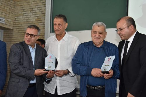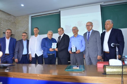 بعدها قام الدكتور المصطفى إجاعلي رئيس الجامعة، بتكريم الثلاثي الفاسي، الذي ساهم في إحراز كأس إفريقيا للأمم سنة 1976، الزهراوي، والكزار، والتازي، هذا الأخير تعذر عليه الحضور لتواجده خارج أرض الوطن، حيث قدم رئيس الجامعة بمعية مدير المعهد، ورئيس الرابطة، ومنسق الندوة، ومؤطري الندوة، دروعا تذكارية كعربون محبة وتقدير.
