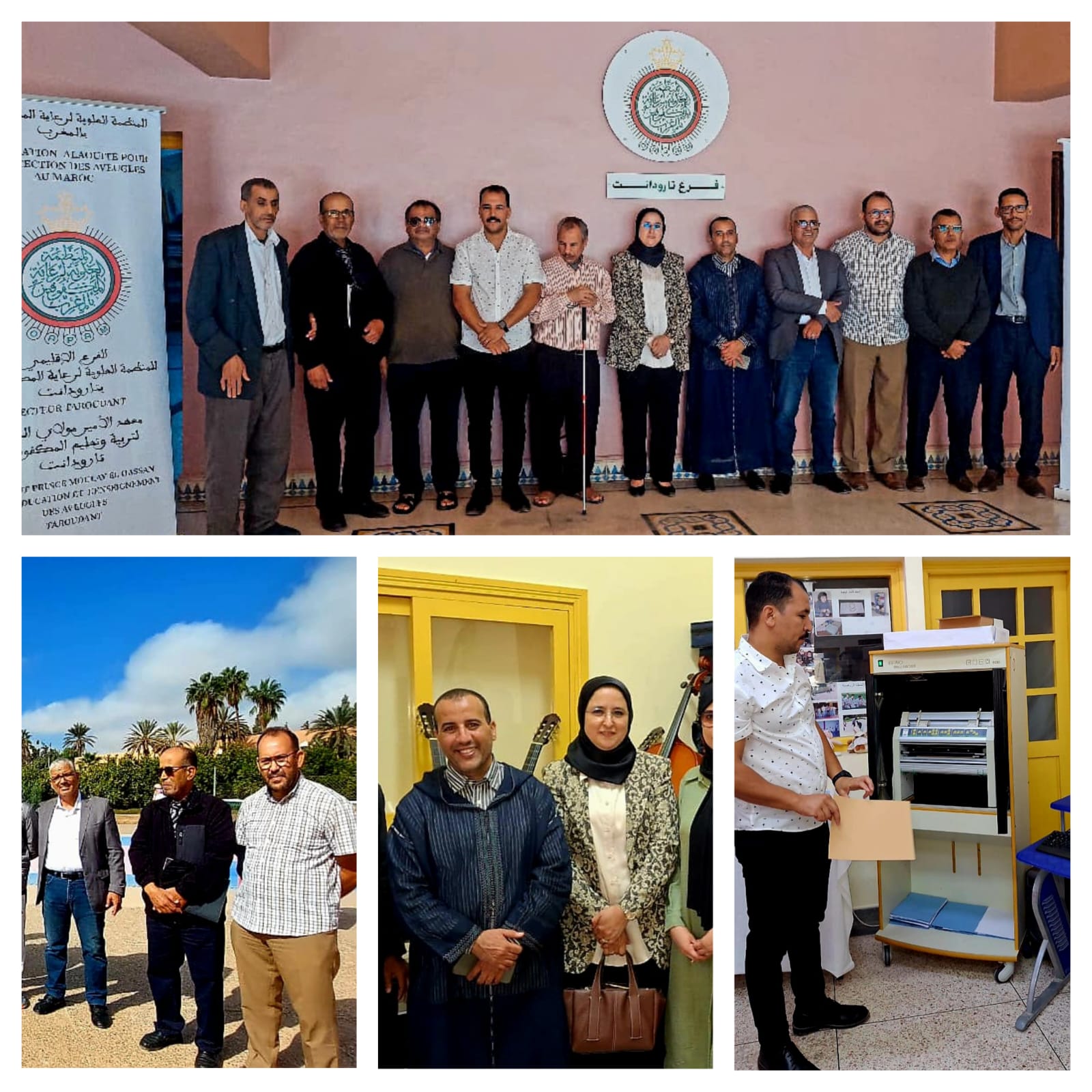 في أفق إبراز دور المؤسسة في دعم تمدرس المكفوفين و ضعاف البصر وضمان اندماجهم التربوي والاجتماعي، وبدعوة كريمة من رئيس فرع المنظمة العلوية لرعاية المكفوفين تارودانت ، حل يوم الجمعة 31 أكتوبر 2025 بمعهد الأمير مولاي الحسن لتربية و تعليم المكفوفين بمدينة تارودانت، فريق جهوي مكون من : نادية عمي رئيسة مصلحة التربية الدامجة بالأكاديمية الجهوية للتربية والتكوين سوس ماسة – إبراهيم أحنوش رئيس المركز الجهوي للتوجيه المدرسي والمهني – رشيد مجاط مستشار التوجيه التربوي – عبد العزيز باعلا مستشار التوجيه التربوي، و ذلك لحضور فعاليات النسخة الثانية للأبواب المفتوحة بذات المعهد المنظم تحت شعار : ” من أجل مؤسسة دامجة ، ذات جودة تربوية رائدة ، تدعم التعلم مدى الحياة ” . هذا الملتقى التربوي يهدف من خلاله المنظمون، الإعداد والاشتغال على دلائل وانتاجات المركز الجهوي للتوجيه المدرسي المهني مكيفة بتقنية ” برايل ” لفائدة التلاميذ المكفوفين و ضعاف البصر.و بالمناسبة عرفت الدورة عدة أنشطة في المجالات التالية :